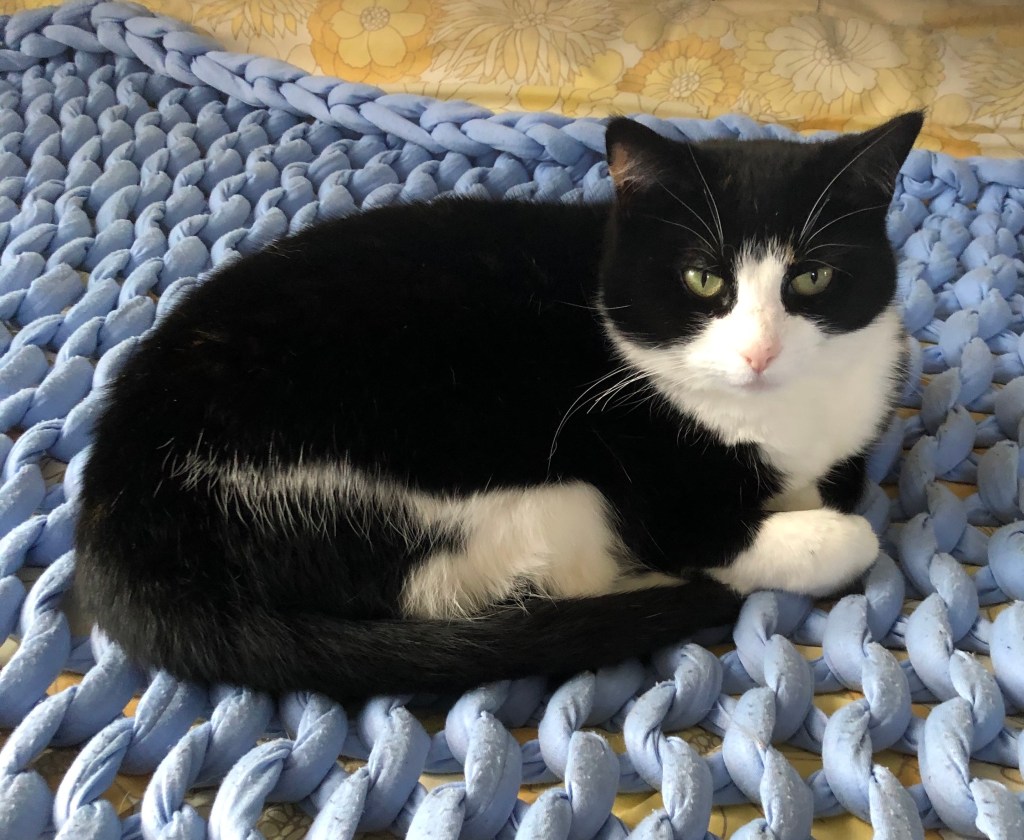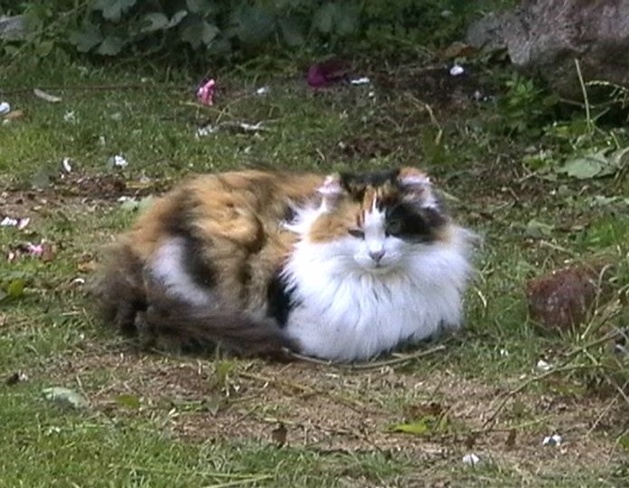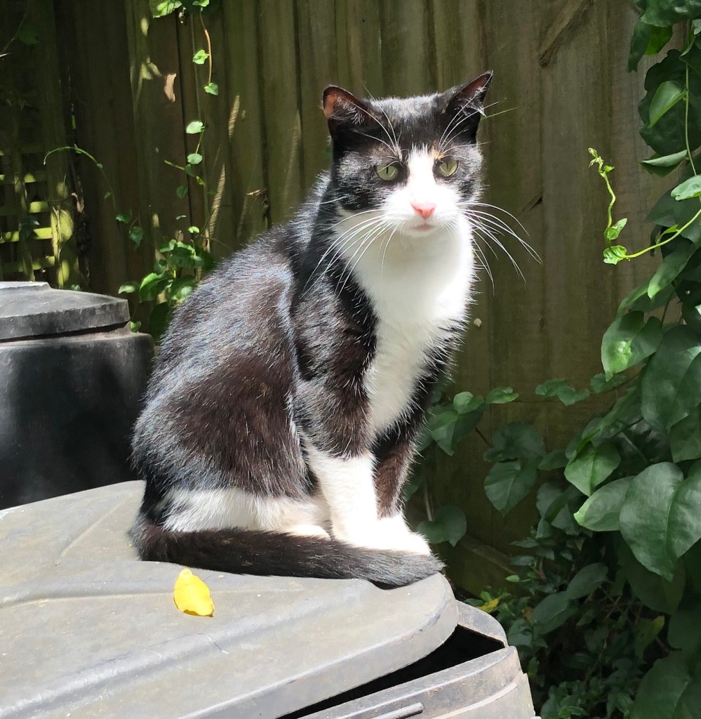 My husband Brian doesn’t usually get involved with the foster kittens, but he took to Nico so strongly that he suggested adopting him. We had long discussions about this. I wanted it too, because I had become so fond of Nico.But logically I knew it would be a mistake. I think we are too old to take on a young kitten who is likely to outlive us. Looking after three cats is a big commitment and expense. And a major barrier would be Magic’s mental health. Even now that Nico has been gone for several days, and I have given the foster room a thorough clean, she is reluctant to come into the house again. Al least she was back in our garden today, but didn’t take kindly to having her photo taken. “No good deed goes unpunished”, and by caring for foster kittens I have caused much heartache for Magic.